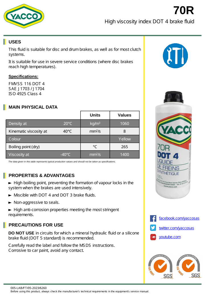 Modèle : YACCO Brake and suspension systems - 70 R Dot 4 500ml