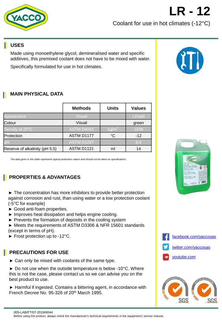 Modèle : YACCO Coolant for use in hot climates LR-12 208L